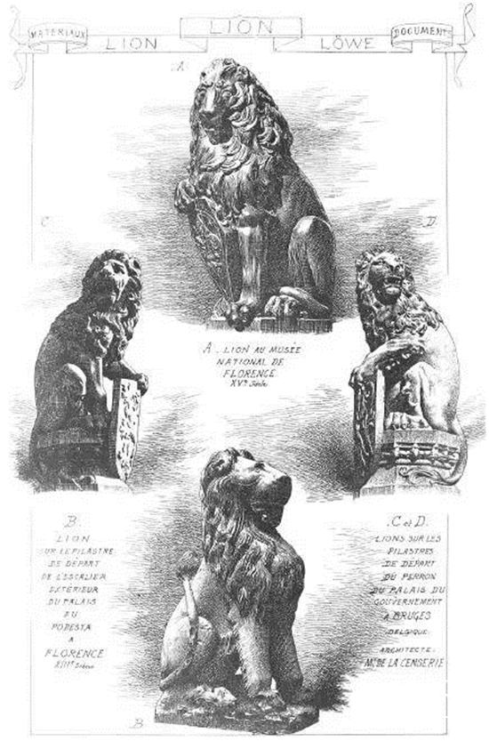 狮子在古代闪族人、亚述人和波斯人那里象征国王,之后继承这一传, 它象征救世主基督、犹太部落的国王,狮子能用尾巴清除自己的足迹,象征耶稣基督扫除恶魔的能力,也象征救世主耶稣的形象在尘世中不着痕迹的存在。而在中世纪晚期,七宗罪与七种动物的形象联系起来,狮子变成了傲慢的象征。