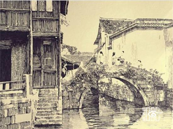 关键字:马国斌,江南,古镇,钢笔,手绘,艺术