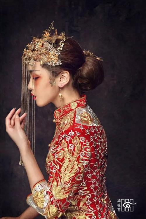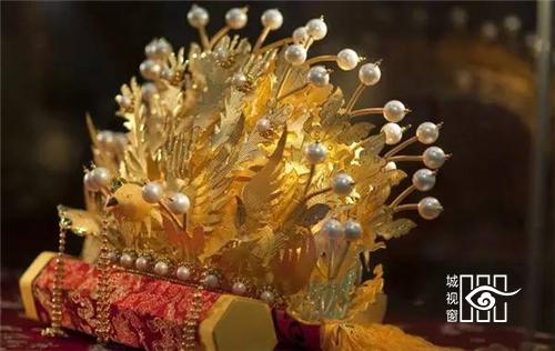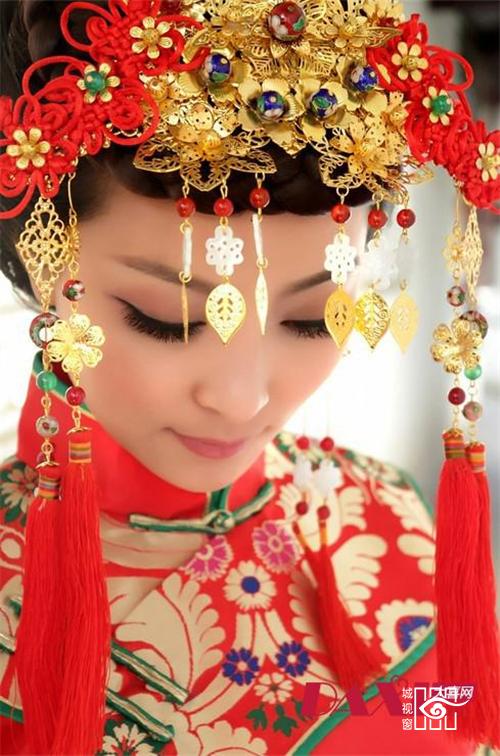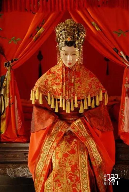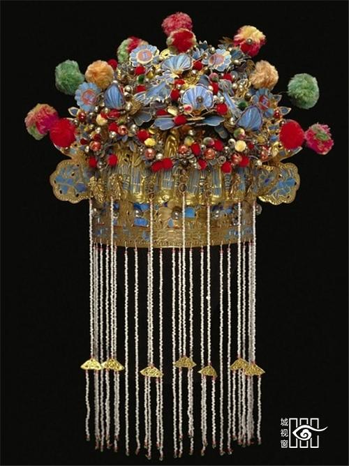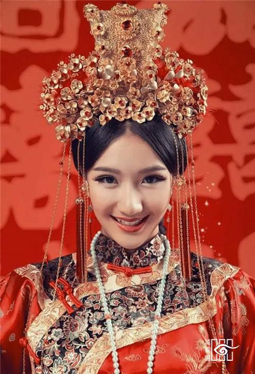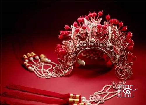 凤冠:古代贵族妇女所戴的礼冠。明清时一般女子盛饰所用彩冠也叫凤冠,多用于婚礼时。因以凤凰点缀得名。凤凰是万鸟之王,所以只有皇后或公主才配得上它,通常只在隆重庆典,如婚礼上才戴,普通平民一概不能佩戴。