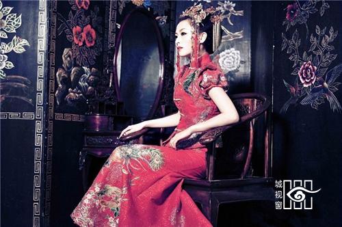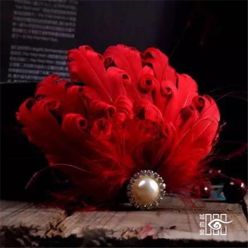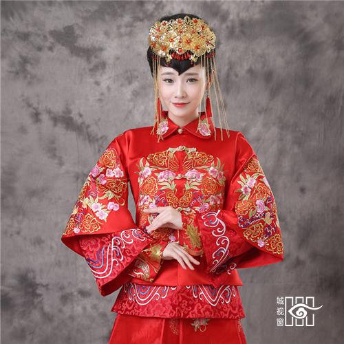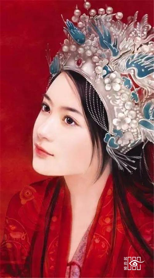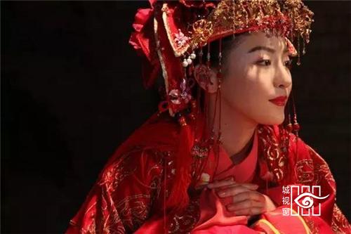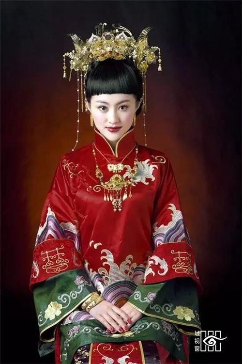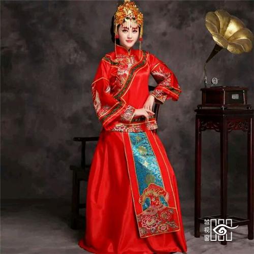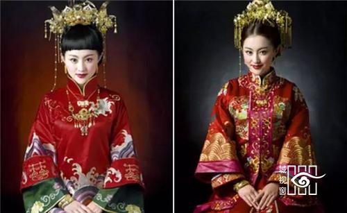 霞帔:古代妇女的一种披肩服饰。宋以后定为命服,随品级高低而不同,是道家的一种贵重服装。大领对襟是它的一大特点,所以又称为对襟长袍。另外它左右胯下开叉,有水袖,是华贵又奔放的休闲服饰。在戏曲中帔一直是帝王、将相、官吏、豪绅的常服,有男帔,女帔之别,颜色分红、蓝、黄、绛、紫、粉红、天青等,其中红色是新婚或喜庆的代表色彩。