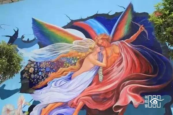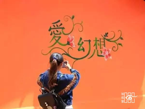 恋人牵手走过一面面爱情的墙,留下美好画面,爱情的滋味有点甜!