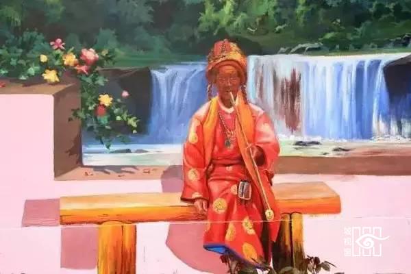 斑斑驳驳的墙面印画着跟民族相关的图案,老人们在墙前,细细地端详,或是在回忆、或是在思索,显得那么安静而又美好。
