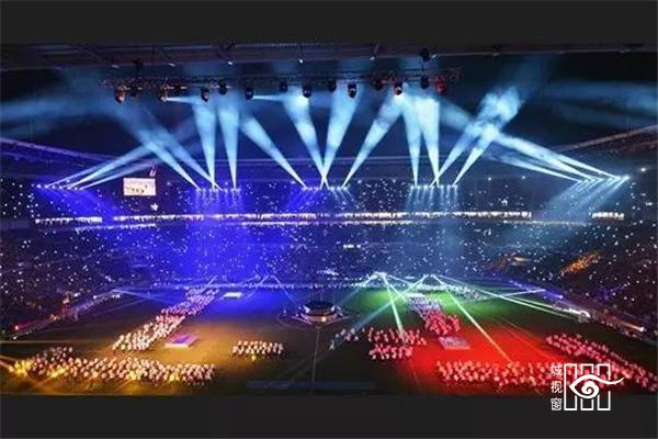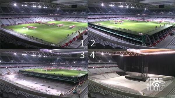 足球比赛时,底层看台展开覆盖跑道
