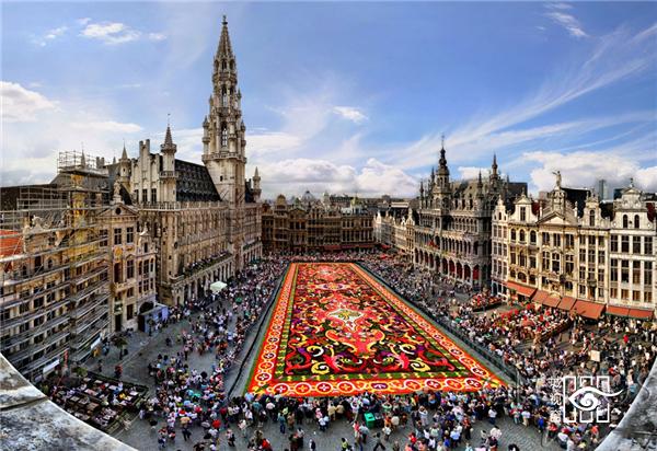 布鲁塞尔大广场 位于比利时王国的首都布鲁塞尔市中心,建于公元12世纪,是欧洲最美的广场之一。它四周哥特式建筑物形似燃烧的火焰,广场地面用花岗石铺就,简约的风格和鲜艳的图画展现了这座城市的文化特质。环广场的建筑物多为中世纪所建的哥特式、文艺复兴式、路易十四式等建筑形式,其建筑风格各异,使人有宛如置身于中世纪之感。