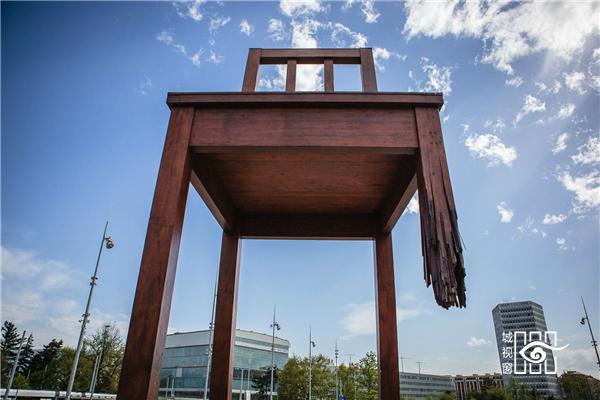日内瓦断椅,12米高的巨大椅子,是瑞士著名雕塑家丹尼尔·伯塞特1997年代表国际残联为纪念“地雷议定书”的正式生效而创作的。制作这把椅子的“木匠”、现年50岁的丹尼尔说,每年全球约有2.6万人因触雷而伤亡,其中1/3以上是儿童。椅子是与人类生活关系密切的最普通的物品,也是人类文明的成果”,丹尼尔说。“选用椅子作为雕塑的主题,是因为椅子象征着和平和交流。换句话说,我以椅子喻人———一个为地雷所摧残而坚毅地站起来向世界呼救的人。”