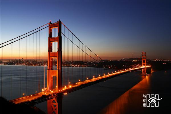 金门桥是世界著名的桥梁之一,也是近代桥梁工程的一项奇迹也被认为是旧金山的象征。大桥雄峙于美国加利福尼亚州旧金山长1900多米的金门海峡之上,历时4年,利用10万多吨钢材,耗资达3550万美元建成,由桥梁工程师约瑟夫·施特劳斯(Joseph .Struss, 1870—1938年)设计。大桥桥体凭借桥两侧两根钢缆所产生的巨大拉力高悬在半空之中。钢塔之间的大桥跨度达1280米,为世界所建大桥中罕见的单孔长跨距大吊桥之一。从海面到桥中心部的高度约60米,又宽又高,所以即使涨潮时,大型船只也能畅通无阻。