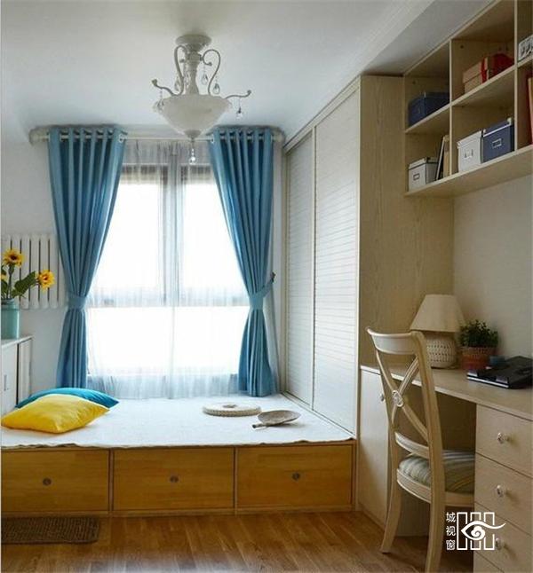 地中海风格的榻榻米卧室给人以明亮清新的感觉。