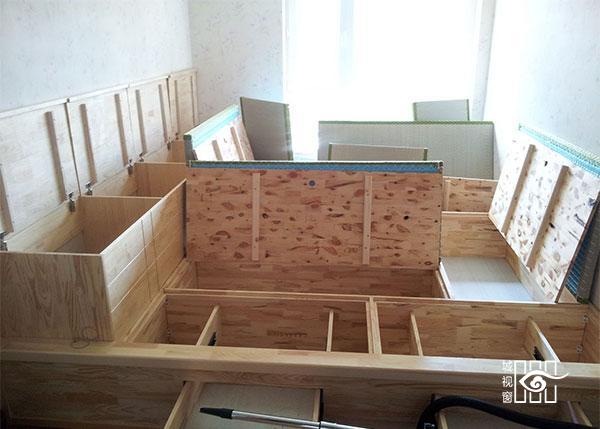 地台内部直接用板材做出储物格的划分,同时也作为承重的支架。不设计升降桌的高度一般在150㎜~200㎜之间,设计升降桌的高度就是按照您要设置的高度了。