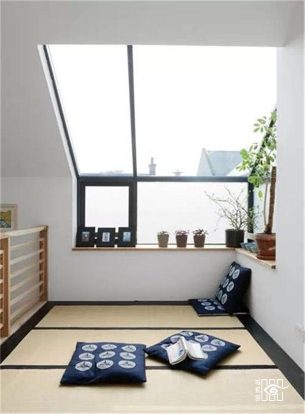 在阁楼上打造榻榻米,躺在这里抬头望天,白天看云,夜晚看星星,不失为一个极好的设计。