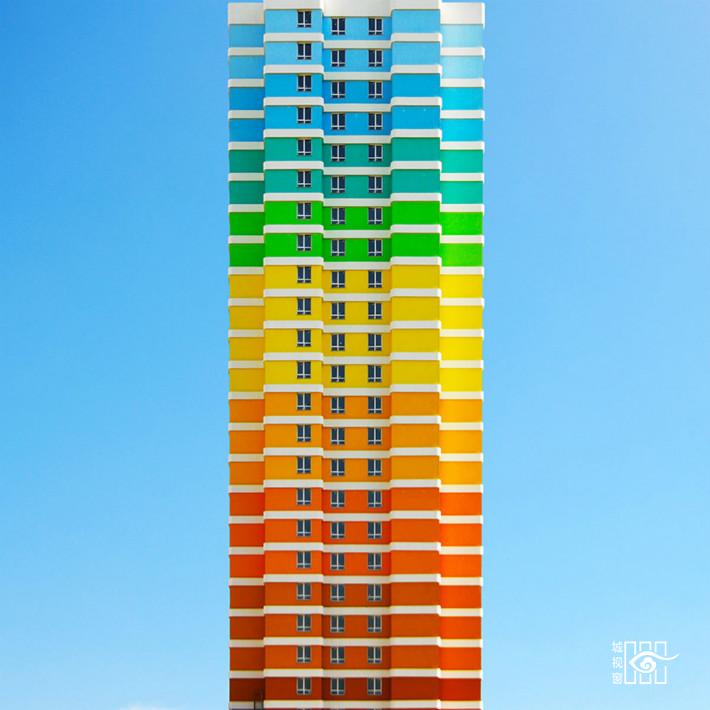 高饱和度色彩,强线条感,几何图形,自然的光影,摄影师试图通过这些组合表达出自己对于建筑的理解。除去最初的功能之外,建筑变成了一个富有色彩和几何线条的个人故事,同时也映射了摄影师的内心世界。