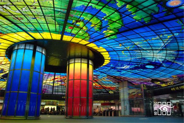 高雄地铁美丽岛站以大型公共艺术“光之穹顶”受到公众推崇,美丽岛站是高雄地铁的最大站,同时也是目前世界最大的圆形车站。其圆形设计出自日本设计师高松伸之手,以4000多片的彩绘玻璃组成,用缤纷的色彩描绘浩瀚宇宙,被命名为“光之穹顶”,是目前世界最大的单一玻璃公共艺术品。