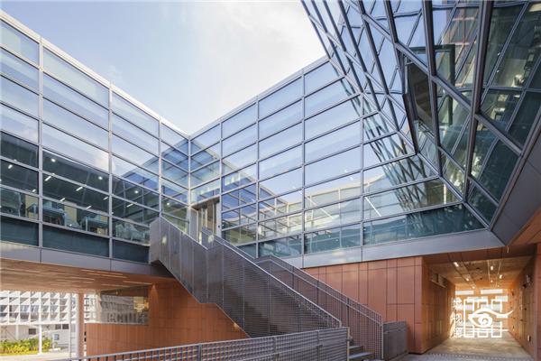 坐落在苏州工业园内的西安交通—利物浦大学环境优美,城市丰富的文化传统和快速的经济发展在这里和谐共存。Aedas设计的行政信息楼的灵感来 源于苏州城著名的太湖石。由于倍受中国文人的喜爱,因此太湖石又被称为“知识之石”,是石灰岩长时间遭受水浪侵蚀之后形成的,石头的周身布满孔洞。奇特瑰丽的外观让 太湖石极具装饰价值,从中国古代起就受到园林设计者的青睐。