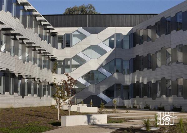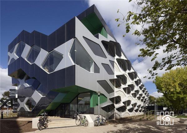 该建筑位于澳大利亚国立大学的Acton校区,建筑外装有六边形的窗户。两个台阶交叉着,为两个实验室的工作及会议场所提供了一道屏障。
