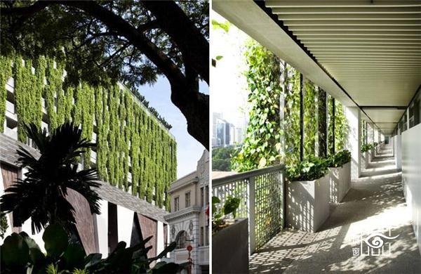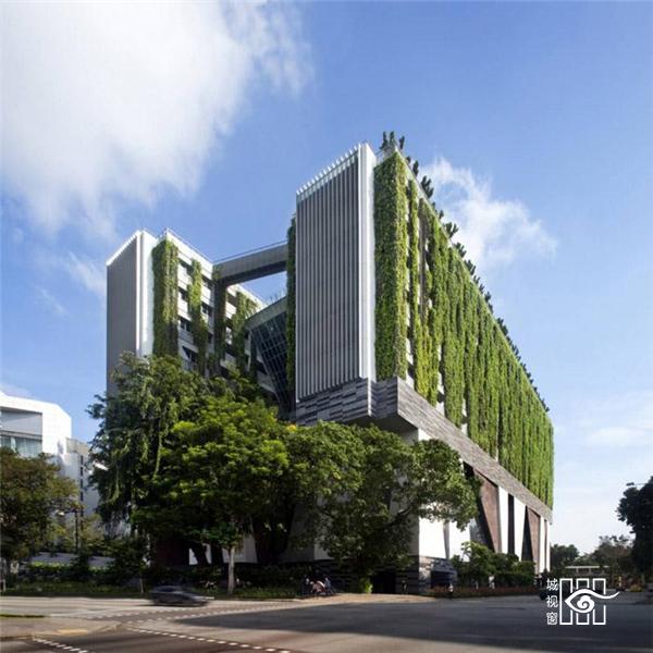 这是新加坡一个专业的视觉以及表演艺术高中,学校位于城市文娱中心地带,其专业的表演艺术场地与城 市紧密结合。设计庞大,密集,但是富有穿孔型空间,实现深层次自然采光和通风。下方是开放的挑高空间,可以实现公众沟通;上放则是安全安静的学习空间。