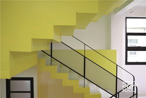 五层的空间由一个中心的特色楼梯串连,每层都由不同的主题颜色定义。储藏及服务 空间位于“储备棍”中,这其实是一个倒置的L形结构,它从建筑后侧的院落中延展 上升,一直弯曲向上 在屋顶层形成花园屋。既有的店铺住宅表皮被特色的格架及 Fai- Fah的标志覆盖,从而形 成与周围邻里的对比,突出了学习中心在社区中的显著特征。
