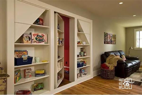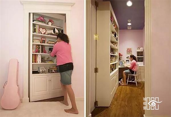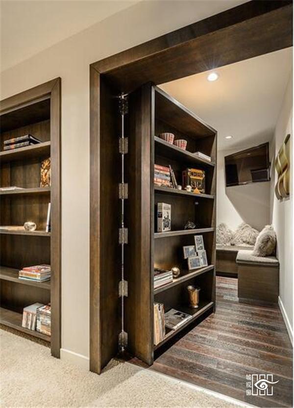 又一个与墙完美结合的书柜,背后别有一番洞天。