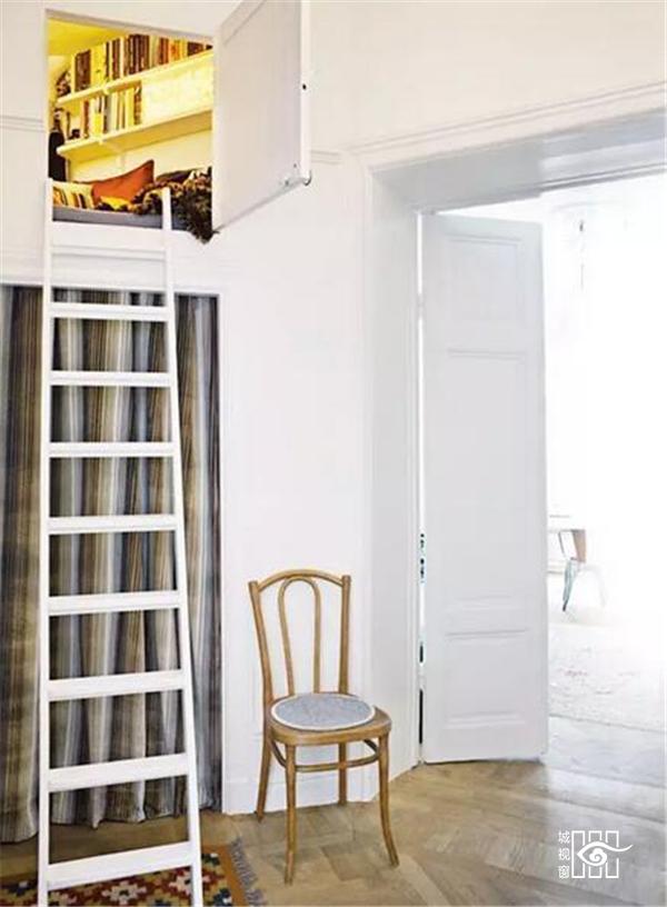 顺着楼梯往上爬,上头竟然藏着一个小图书馆,看着看着眼皮打架了,可以抱着靠枕小憩一下。