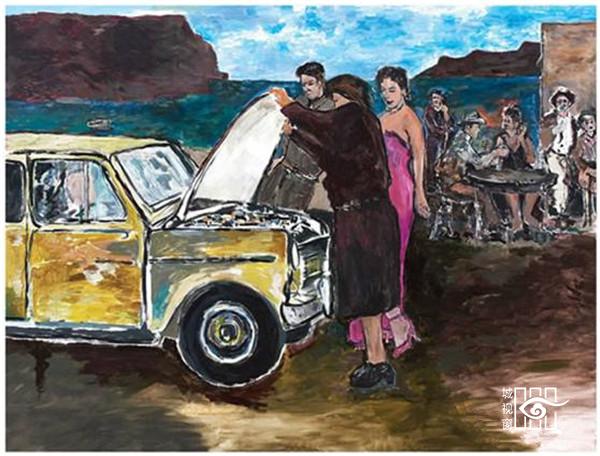 迪伦的画作画面简单、干净,色彩明丽、丰富,几笔粗线条勾勒出空间的变幻,看似平凡的景象,却透露迪伦对待艺术的态度。登录他的美术作品的官方网站,你几乎不敢相信这位摇滚乐先驱竟然还有这般美术造诣。“伟大的绘画在人们常往之处。”迪伦曾经说,“想想,如果人们每日用餐时都能看到一幅毕加索,那将会多么美好。”