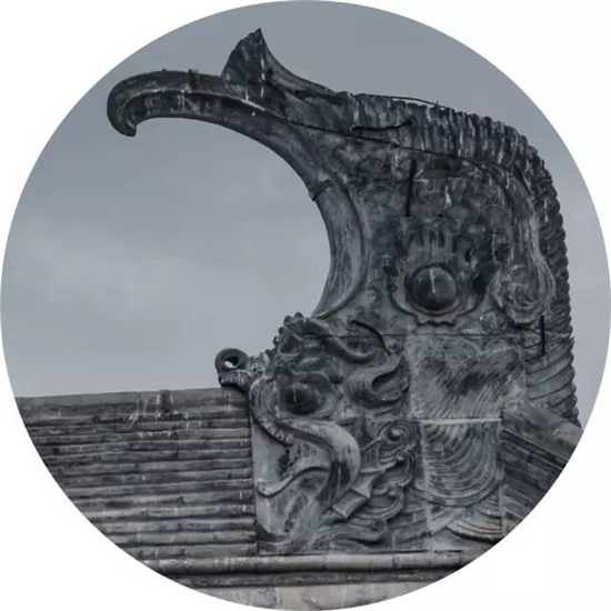 鸱尾最早的形象是传说中的“鱼虬”,《谭宾录》载:“东海有鱼虬,尾似鸱,鼓浪即降雨,遂设象于屋脊。”唐代之后,其形象日益丰富,鸱尾的头部造型愈发向龙靠拢。