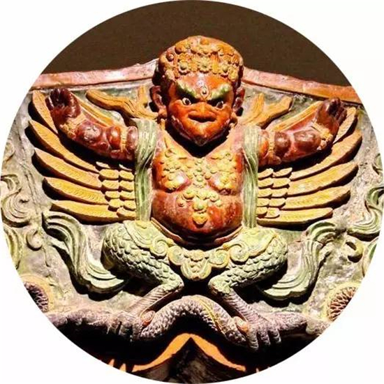 大鹏金翅鸟又叫做“琼鸟”, 藏文叫做“琼”,汉语叫做“鹏鸟”, 又叫做迦楼罗鸟,常装饰在佛教建筑的塔、殿之上。传说人类出现之初,到处有妖龙作祟,如来佛祖就派这些大鹏金翅鸟去啄走了妖龙,为人类的生存创造了清平世界,所以自古至今人们供奉这种大鹏金翅鸟,把大鹏金翅鸟当成护法神作为保佑平安的心灵寄托。