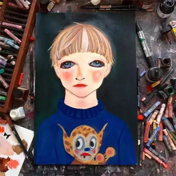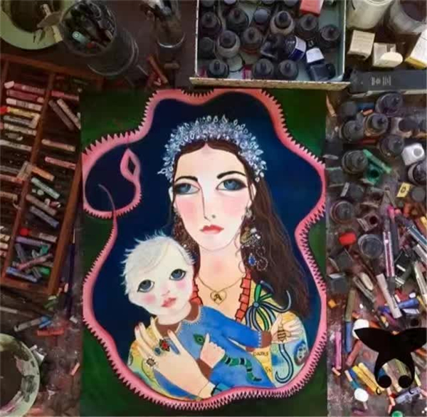 她的画作风格十分鲜明