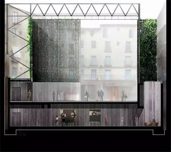里拉剧院的拆迁在赫罗纳省的里波利历史街区留下了一处城市空白,孤独俯瞰着特尔河。怀着对老剧院昔日规模与精神的追忆,且深刻了解到城市广场的重要性,三位建筑师创造出一个独特的覆顶式广场,适合多种类型的活动,同时室外空间可供居民享受休闲时光。广场下方,配有一间多功能地下室。