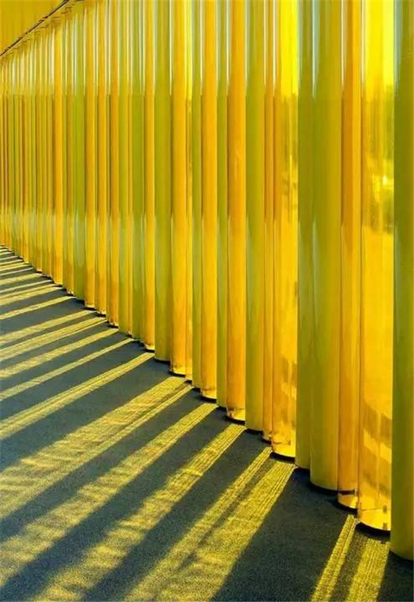 入口处可以看到透明的屋顶和竖直的塑料百叶帘。