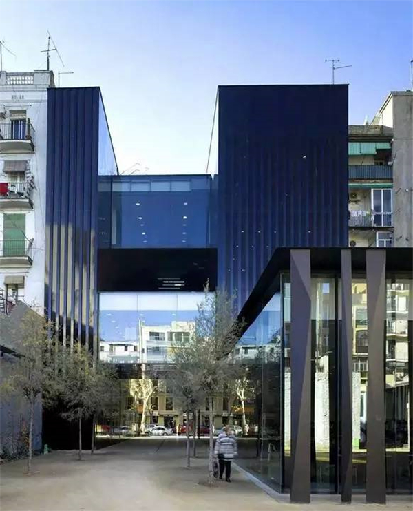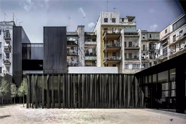 为了向著名编剧和诗人琼·奥利弗致敬,图书馆特以他的名字命名,2005年RCR通过竞标赢得项目设计权。最初的招标仅仅是要求设计一栋行政大楼,当组委会了解到建筑师们对空间和社会责任的初衷,便同意在此建造更适合这一场地和有益社区的城市服务设施、图书馆和老年中心。建筑师们希望设计能够为街区注入活力,将内庭打造为公共场所,并建立一个图书馆。由落地窗围合的**阅读室设在图书馆两个主翼之间并抬升至空中,让自然光进入两侧,并形成一个公共区域的入口。庭院周边的花草树木、泥坯小径、坐席区域、游戏设施等,都成为了图书馆阅读室的自然延伸。老年中心沿着内部庭院的一侧延展扩张,成为新空间的框架。