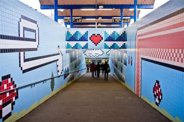 受到电脑游戏和电脑图标的启发,艺术家把这里的图案以像素化的形式展示出来,让你仿佛置身游戏世界,变成了超级马里奥。