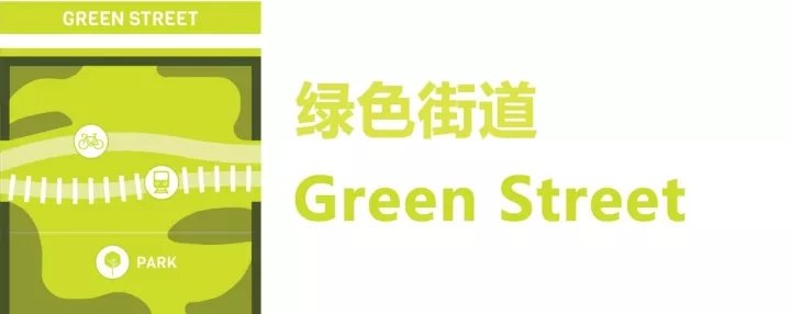 “绿色街道”可以融入广泛的设计元素,这包括街道树木、透水人行道、生态调节池和洼地。尽管“绿色街道”在设计和外观上各有不同,但它们的功能目标都是一样的。比如,一条“绿色街道”可以是包括一个自然雨水管理设备的、可以是服务于都市农业的、可以是能容纳大面积遮荫树群的,或可以是仅仅为人们提供休憩、体验的花园和绿地的。