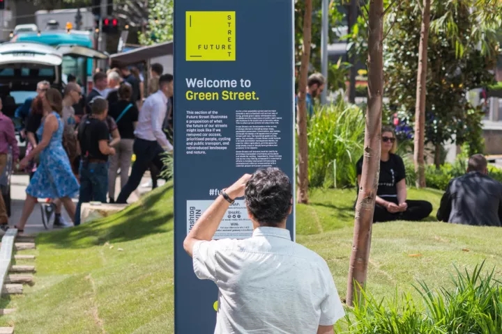 The Future Street project has been designed by Place Design Group to showcase innovative ideas around landscape, infrastructure and technology to make our cities, suburbs and towns more liveable, productive and sustainable. The Future Street installation is facilitating a unique multi-disciplinary and multi-sector gathering of urban leaders who are seeking to reimagine the role of the street in the future, and who are aspiring to bring the green street, complete street, and smart street agenda’s together.