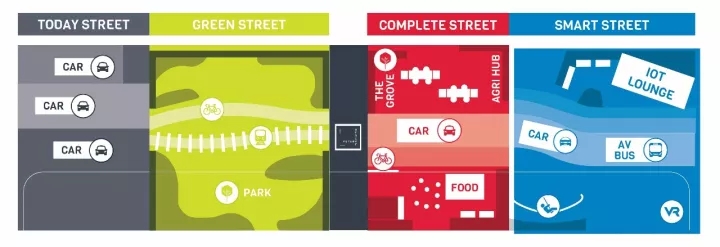 “智慧街道”对自动驾驶车辆和物联网是如何解放街道及街道周边的空间,从而增加街道的安全性及舒适性这一议题进行了测试。