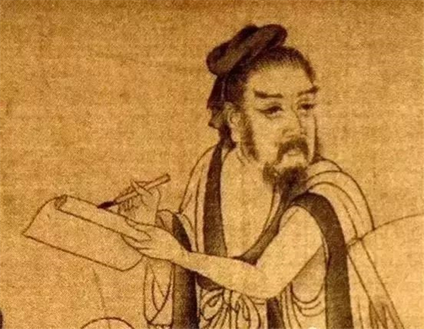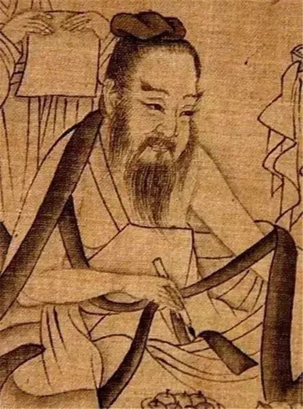 ▲图中仓颉以左手执笔,大指斜翘贴笔杆,四指握笔,为握管式的执笔法。笔杆前粗后细尾尖。