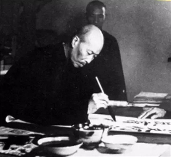 ▲著名的考古学家、金石学家罗振玉(1866-1940年)执笔腕臂不离桌面,应为掌竖式五指执笔法。