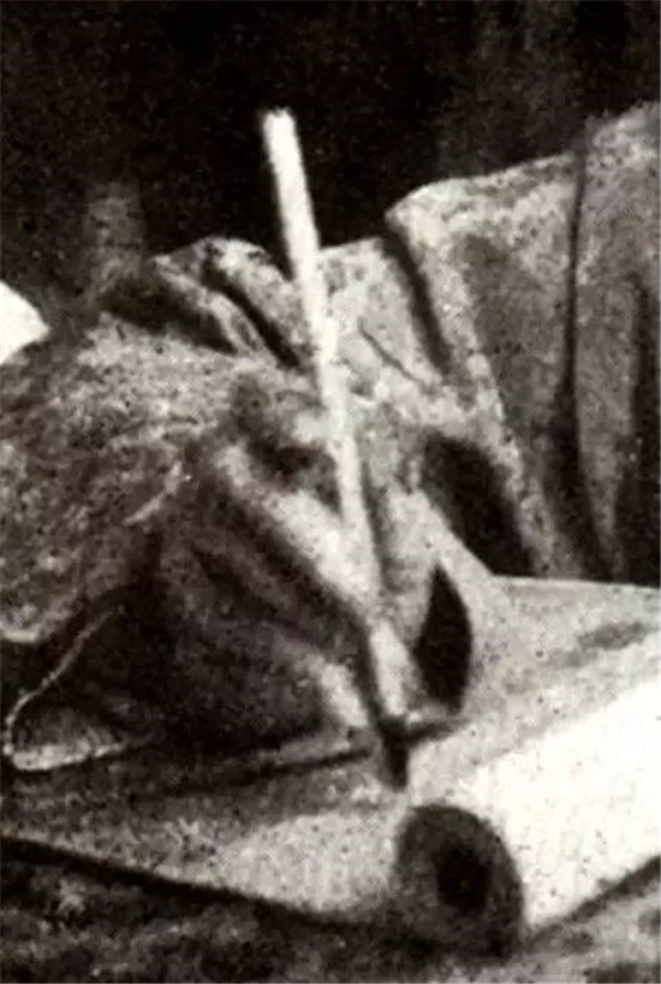 ▲图中执笔者大拇指与食指执笔应无疑,中指是否参与难以确定,二指与三指执笔皆有可能。