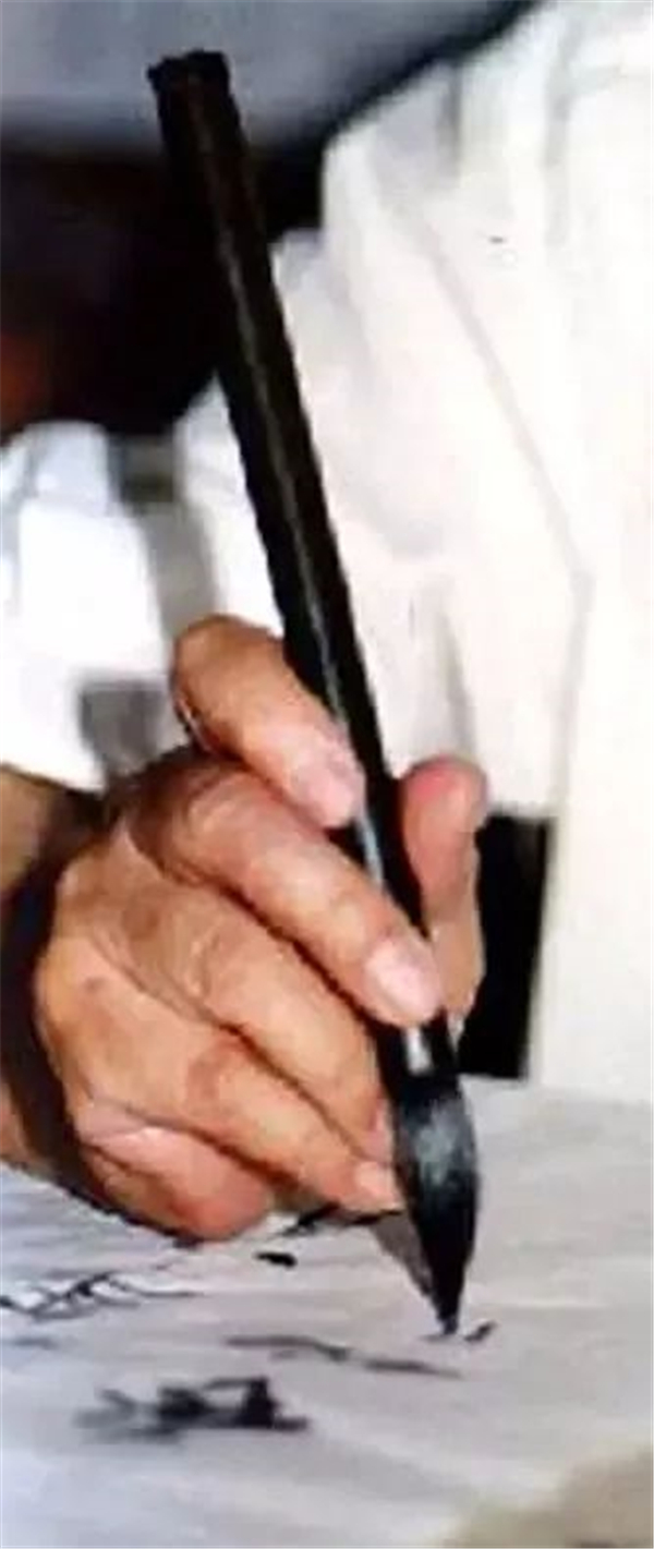 ▲舒同(1905-1998)是中国书法家协会首任主席,其书法被誉为“舒同体”。从舒同这张照片可知,舒同作书时采用的是三指双钩之法。