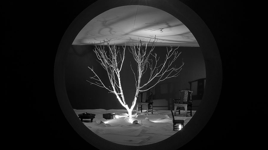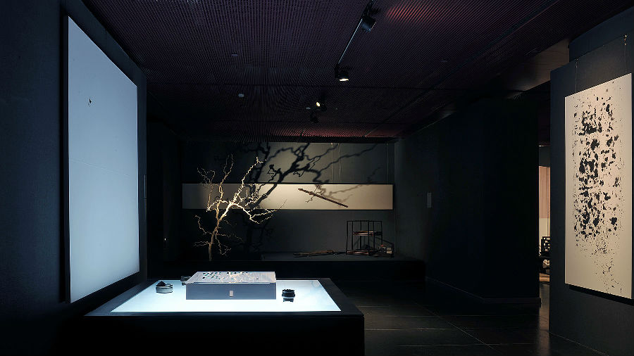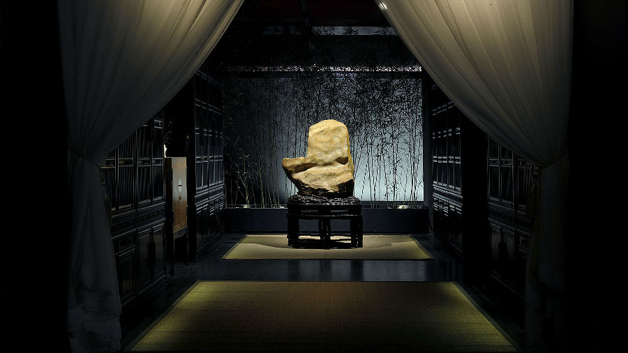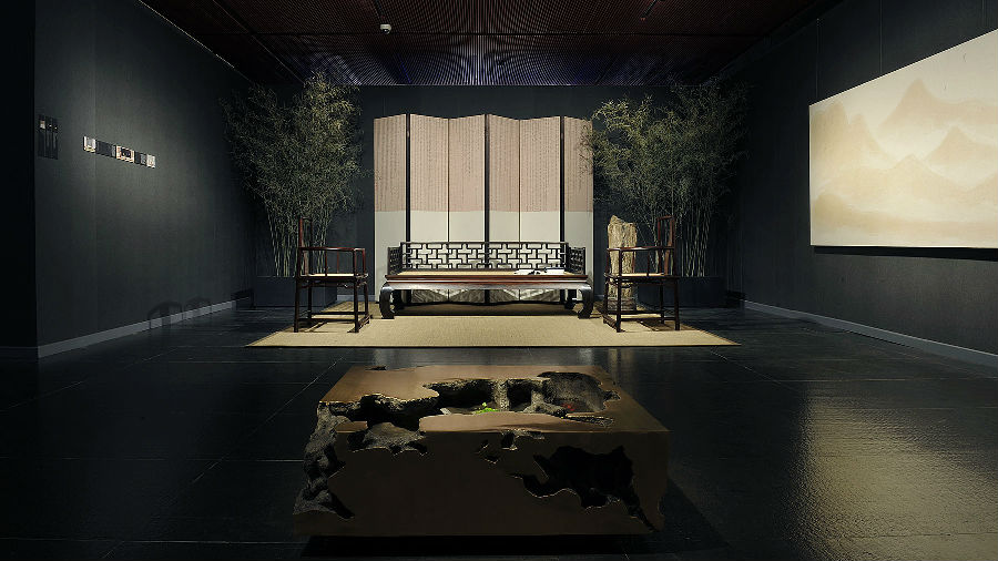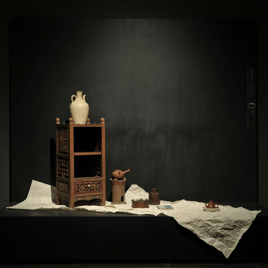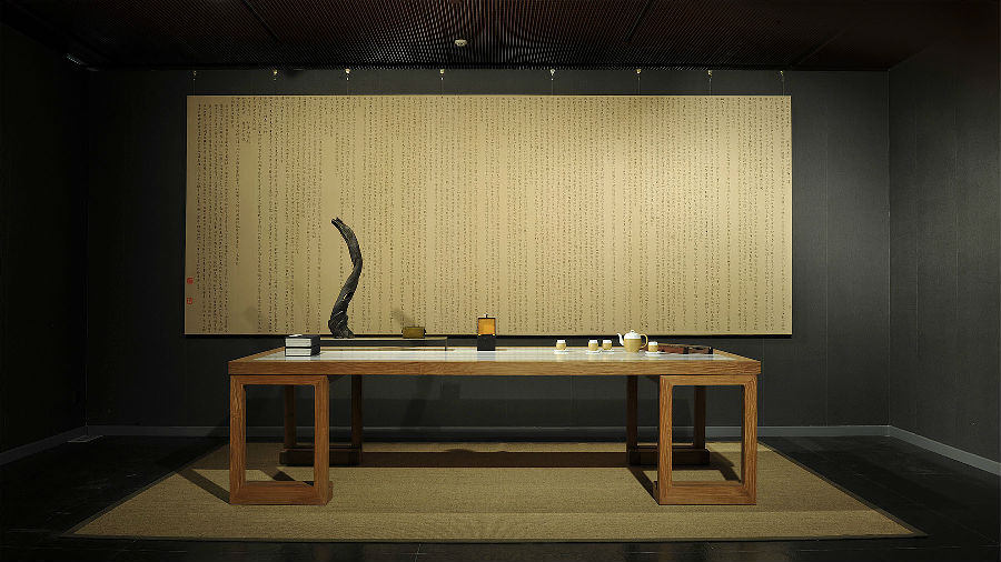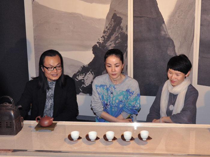 策展人佘文涛先生向王菲讲解策展创意并品茗。