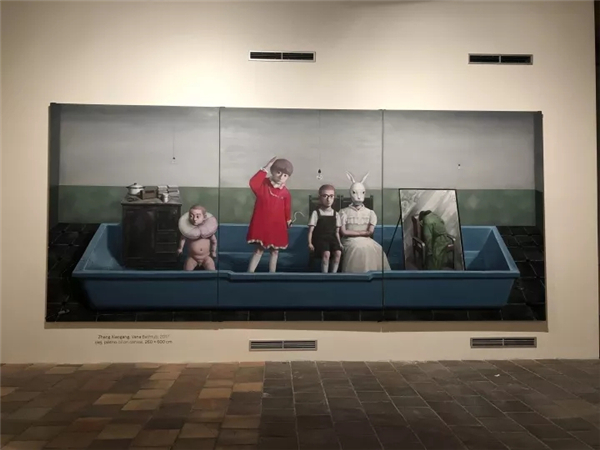 2018年,捷克布拉格市立美术馆的“重逢:诗与哲学——张晓刚、王广义艺术展”现场