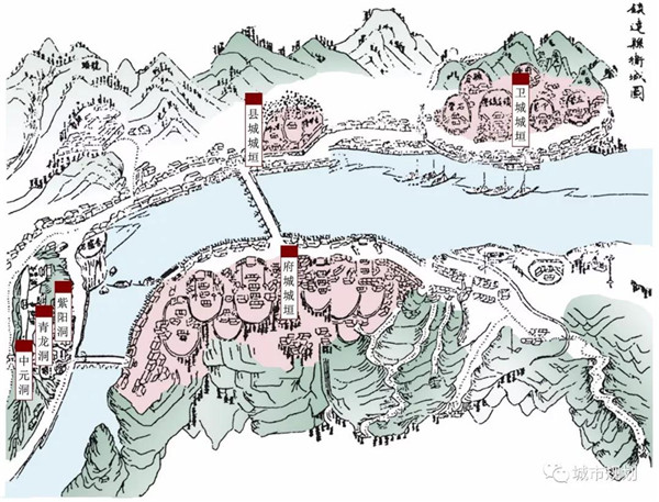 中国城市结合自然山水的人居创造并非一时之功,其历史实践总“有始有继”,城市格局正是在累代承继中日臻完善。“因时立形”便是城市历时性格局建构的一种重要方式。从历史文献来看,“因时”即因循时间、时机,如《太平寰宇记》中的“远览古今,因时之宜”;“立形”即建立形式,如《论衡•骨象篇》中的“禀气于天,立形于地”。在中国古代城市规划中,“因时立形”强调空间随时间变化而有序发展,新旧空间秩序与山水环境秩序有机融合。