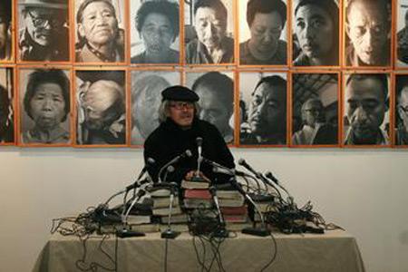 岛子:这批新作是从2012年到2013年创作的,大约有40多幅。大尺幅的丈二有4幅,其中《七天使》画了一个星期。半写意半抽象的画法,因为尺幅大,画翅膀、羽毛要跪在地上,有时勾线、皴点要趴下,像祷告一样。画天使,笔笔都要到位。一个天使画一天,然后就要休息半天,跪着画实在太累了,但只能这样。