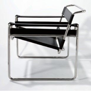 记得给我印象最深的是包豪斯图书馆门前矗立的巨型椅子,真是我见过最大的椅子,足有两层楼高,可以当成雕塑看。此椅由于不做椅面,则寓意空灵,表现了包豪斯主张创新突破,以人为本,少即是多,简洁明快的设计风格。在包豪斯的产品设计领域中,家具设计自然是我的重点关注对象,家具设计中包豪斯为之骄傲的是瓦西里椅子。瓦西里椅子是包豪斯早期教师马歇·布劳耶(Marcel Breuer,1902--1981)1925年设计的,此人是包豪斯的第一届毕业生,后留校任教。他从自行车的车把上得到启发,从而萌发了用钢管制作家具的设想。1925年世界上第一把钢管椅子(瓦西里椅子)就是在这种设想下设计出来的。该椅造型轻巧优美,结构简洁纯净,具有优良的性能,这种新的家具形式很快风行世界。瓦西里椅子曾被称作20世纪椅子的象征,在现代家具设计历史上具有重要意义。由于钢管家具具有包豪斯最典型的特点,以至于被后人认为是包豪斯的同义词。