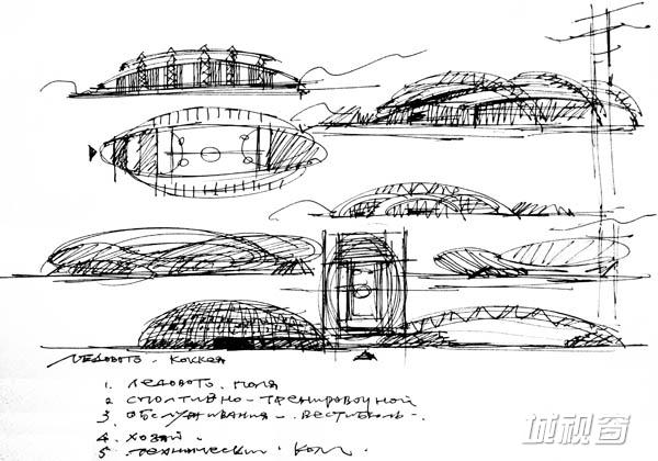 体育馆构构思草图(作者设计草图)