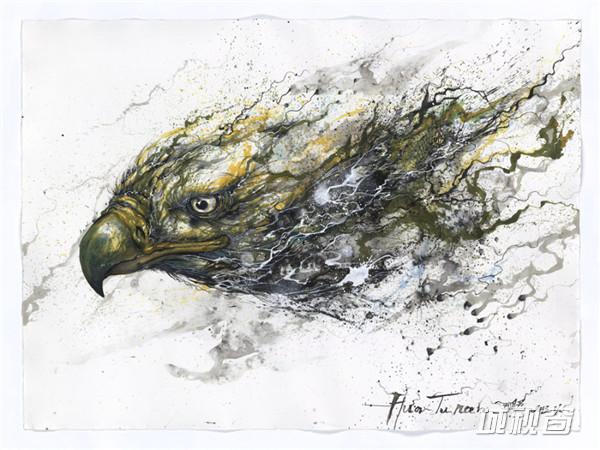 长空猎鹰-纸本水墨
