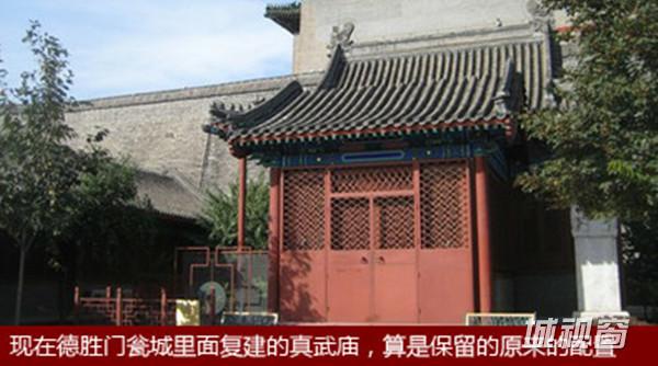 北京内城九门都有瓮城(瓮城的用途是战时加强对城门的防守),每座瓮城里边儿都有庙。其中七座是关帝庙,两座是真武庙。关帝关二爷就不用说了,真武庙里供的是真武大帝,因为真武大帝是北方之神,所以北边德胜门安定门两座城门得靠他老人家把门儿。