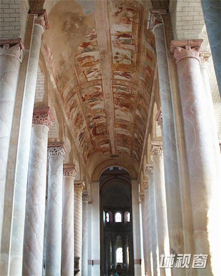 圣塞文-梭尔-加尔坦佩教堂(Abbaye de Saint-Savin-sur-Gartempe)由筒状拱支撑的屋顶-罗马风