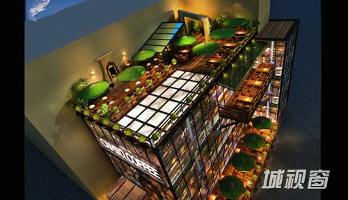 锈铁砖石混凝土玻璃合体,立体感分明的几何图形勾画出的建筑外观,无论白天与夜晚,都各具魅力。露天处的散座区设计犹如郁郁葱葱的绿树,搭配玻璃体,勾勒出一幅华丽生动的风景画。