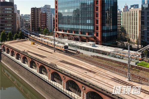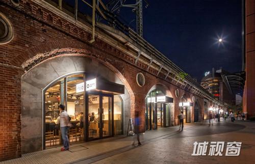 玻璃幕墙咖啡馆位于上层的铁轨之间