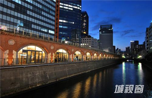 于1912年开业,这个前火车站已经退役多年,尽管其上层轨道仍在使用中。细长型的建筑向南是一个新的公共广场,而向北则是东京神田。沿着这块高地,木质平台连接入口和各个商店,它将常常被遗忘的水道和建筑联系起来。