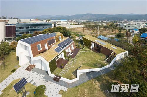 由韩国韵生同建筑师事务所(UnsangdongArchitects)设计的“节能绿屋”(Energy+Green Home)坐落在韩国京畿道。这幢私人住宅采用了环境友好技术创造了一套智能节能系统,并获得了德国被动式房屋研究所(PassivhausInstitut)的认证。
