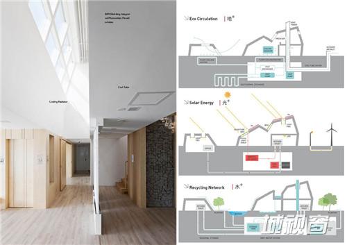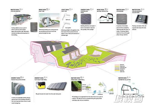 节能绿屋的目标是要呈现给大众一个零能源住宅的样板。它遵循三条理念:能源友好,以绿色科技手段供给房屋可持续能源,尽量节能;环境友好,坚持与环境和谐相处;情感友好,以设计鼓舞居住者的情绪。